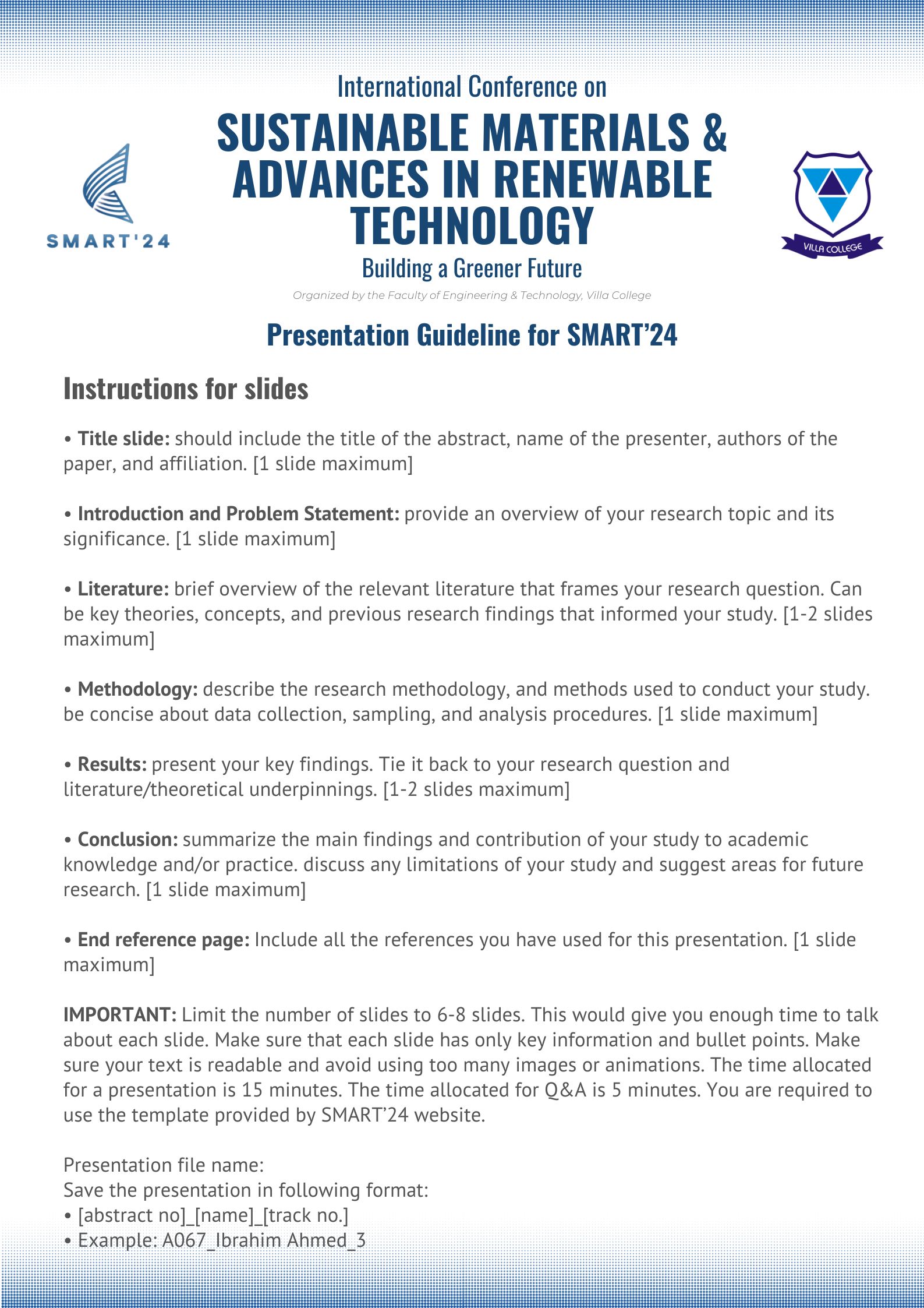 The "Sustainable Materials & Advances in Renewable Technologies" International Conference invites students, academics, researchers, and experts from diverse backgrounds, including various agencies, colleges, universities, research institutions, as well as government and private sector professionals. We welcome your contributions, be it research findings, tactical strategies, technical innovations, cutting-edge technologies, or best practices that address the pressing need for groundbreaking solutions to the complex issues of our time. All submitted abstracts and papers will undergo a rigorous and impartial review and assessment process by our Evaluation Committee, comprising esteemed journal editors and domain experts. Successful authors will have the opportunity to present their papers at the conference as invited speakers.